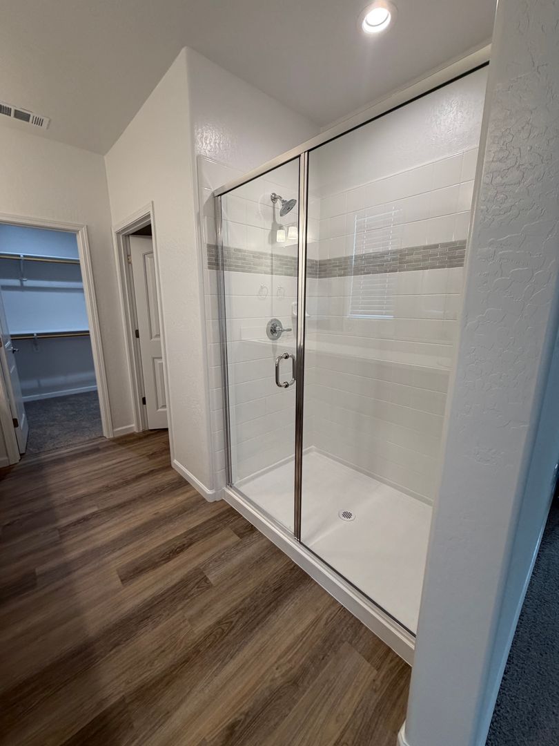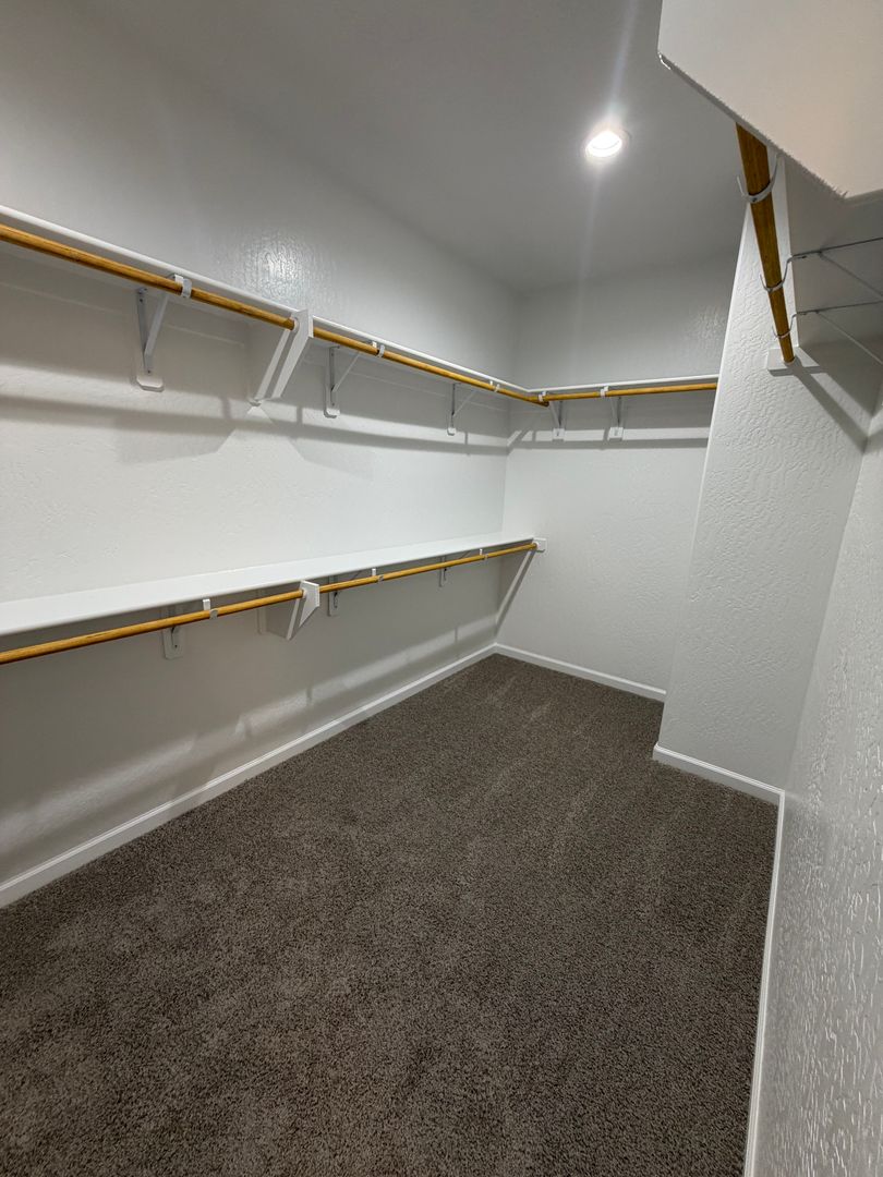 The downstairs level includes one bedroom, a full bathroom, the kitchen, and the main living area. Upstairs, you’ll find the convenient laundry room, the spacious primary suite, and two additional bedrooms. The primary bedroom boasts a private bathroom with dual (his and hers) sinks and a large walk-in closet.