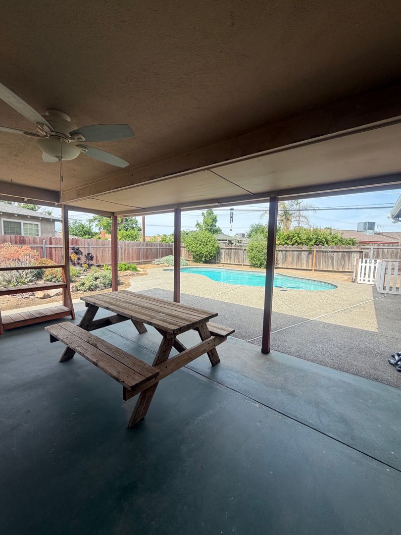 3 bedroom, 2 bathroom home in North Hanford with a pool! Brand new kitchen cabinets and solid surface counters in the kitchen with black appliances. The primary bathroom has an updated shower. Door leading to the backyard and pool from the primary bedroom. Pool Service included